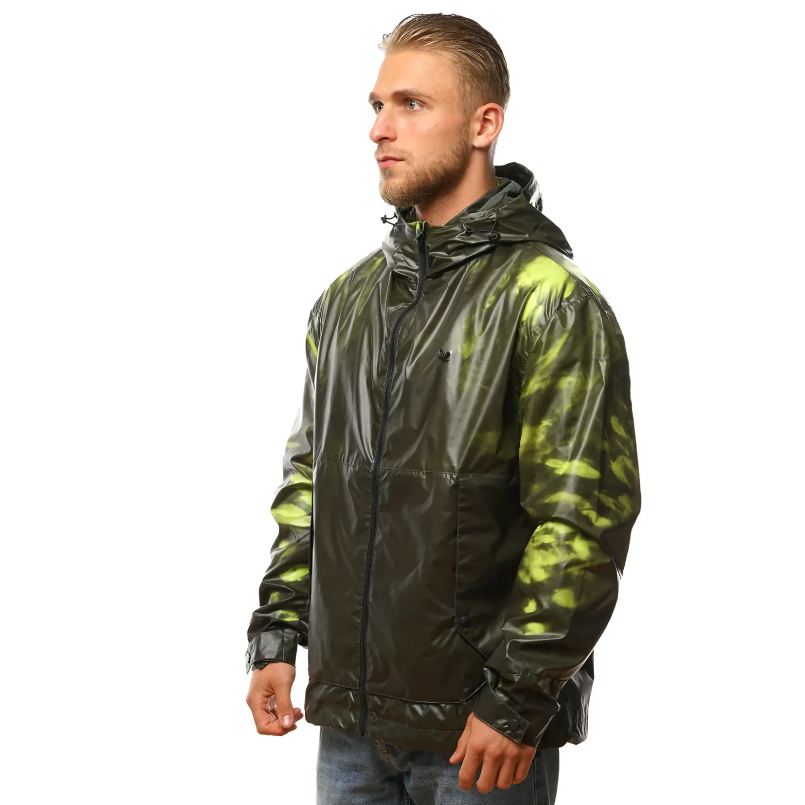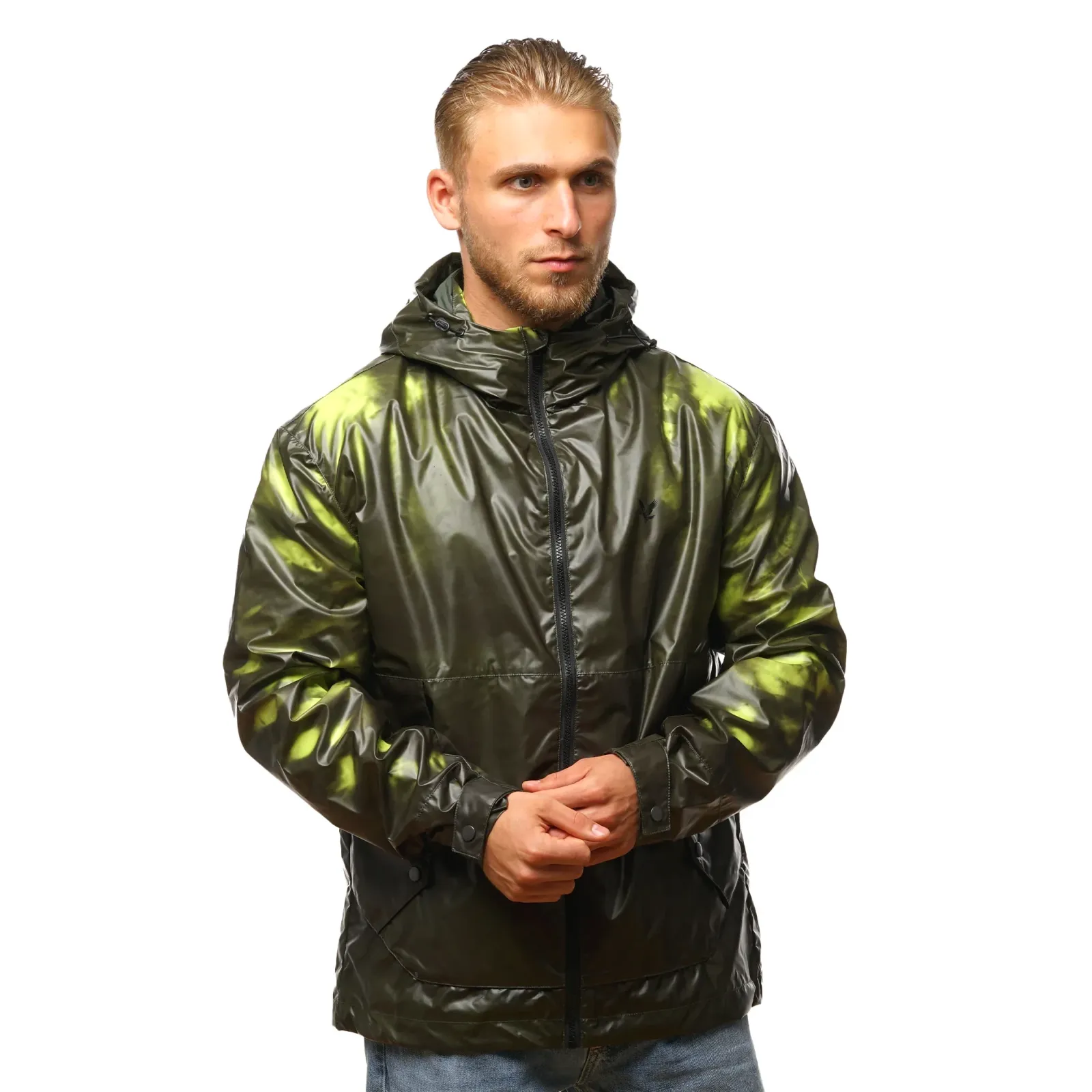 Легка, але ефектна куртка з термореактивного матеріалу, який змінює відтінок залежно від температури. Вільний, прямий крій забезпечує комфорт і зручність у поєднанні з іншими речами, а капюшон і кишені роблять її практичним вибором на змінну погоду.