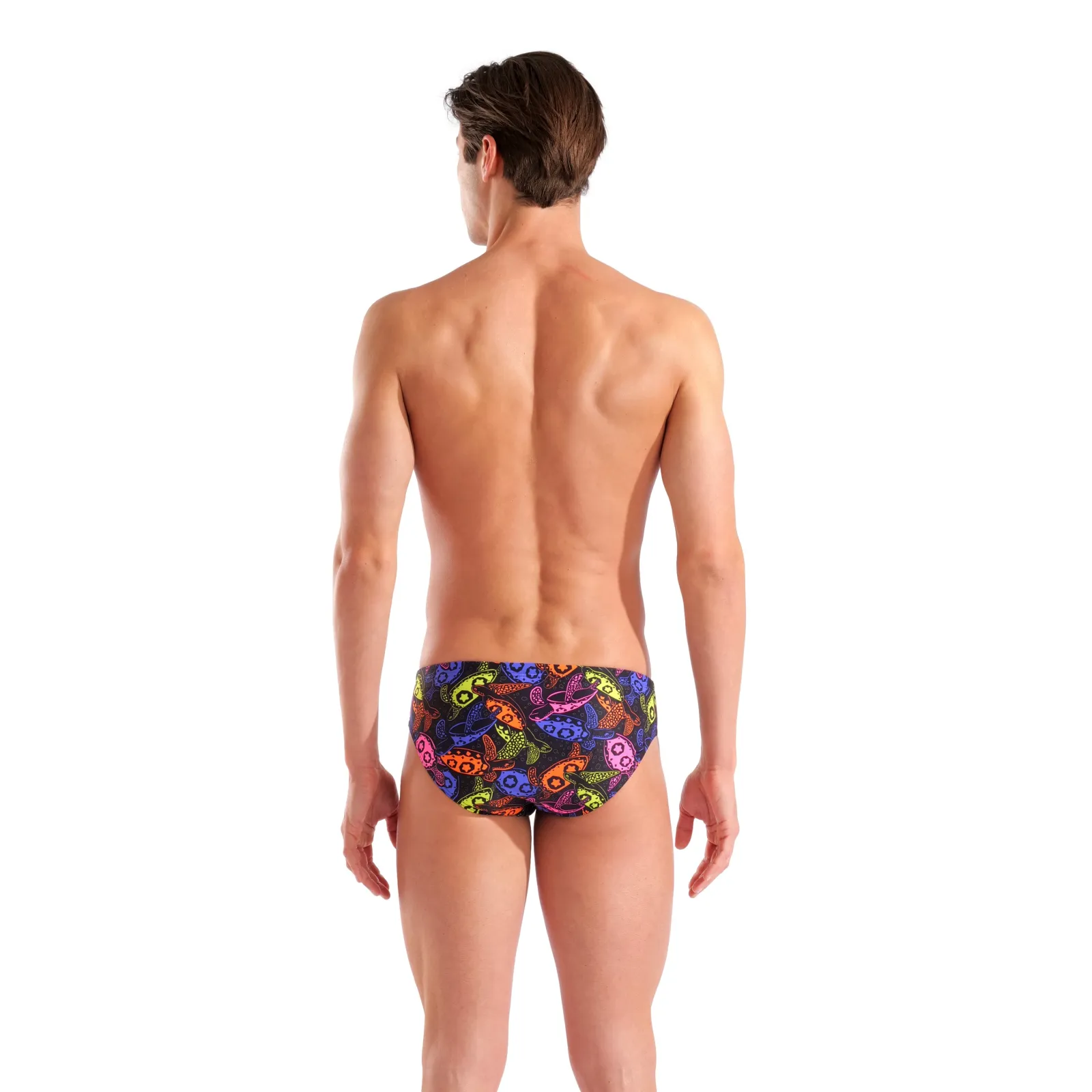 Випромінюйте спокійну впевненість і потужний рух води у чоловічих плавках Sea Turtles Swim Brief. Ця тренувальна модель прикрашена багатокольоровим принтом із черепахами та має крій, оптимізований для гідродинамічної ефективності. Регульований пояс зі шнурком забезпечує надійну посадку під час кожного гребка й повороту. Поєднуйте з улюбленими окулярами та шапочкою для завершеного образу.